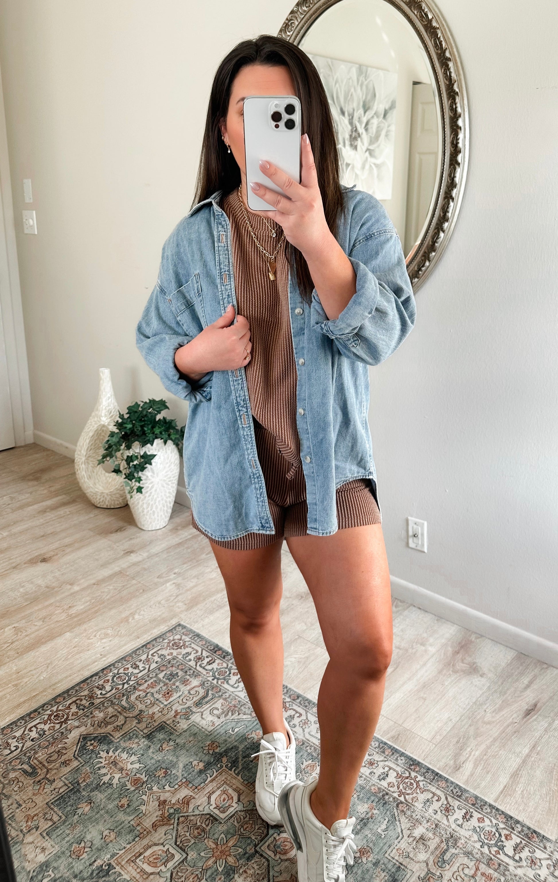 Model is a true size medium in tops and is a medium/large in bottoms.