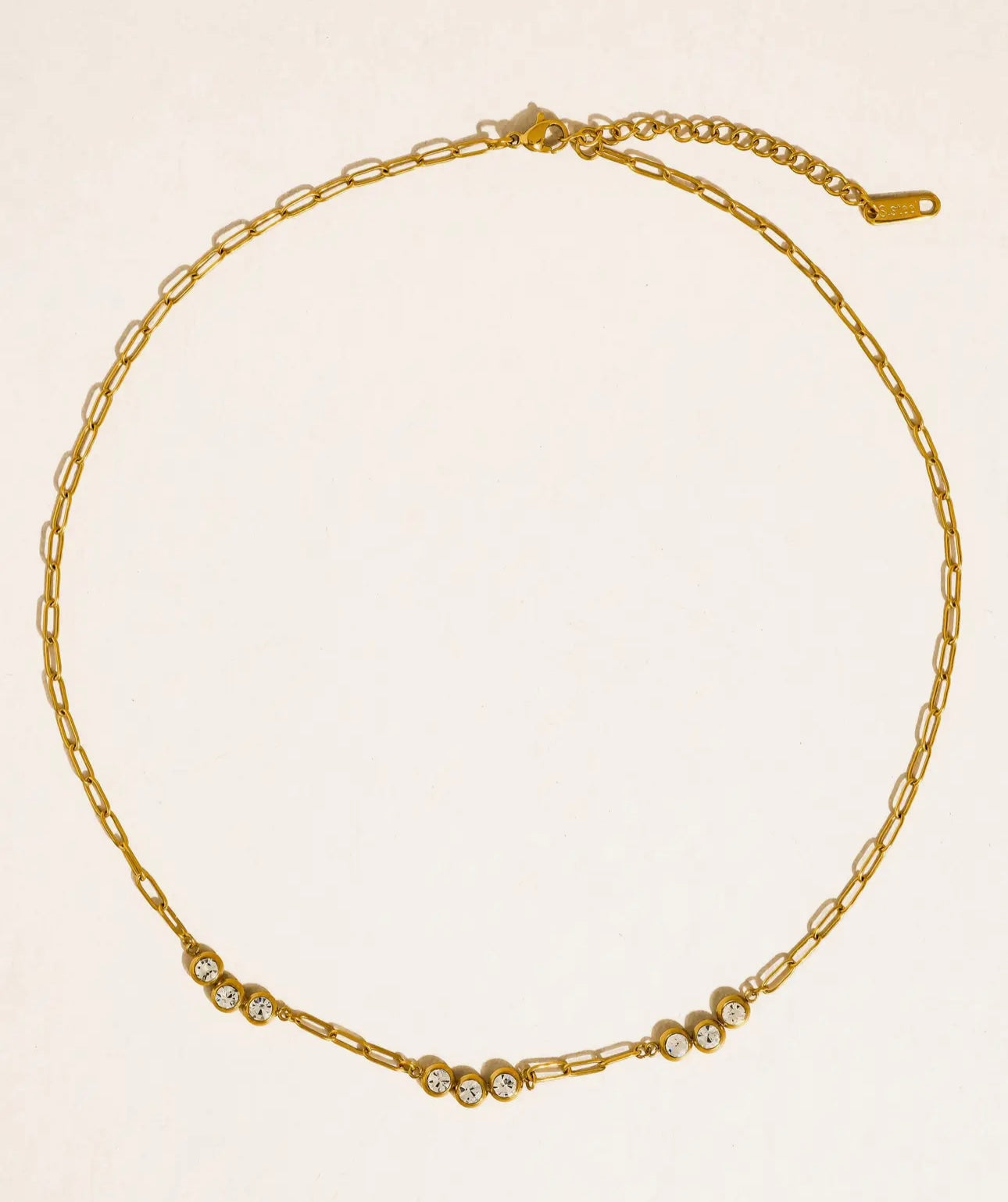 18K Gold Non-Tarnish CZ Station Chain Necklace